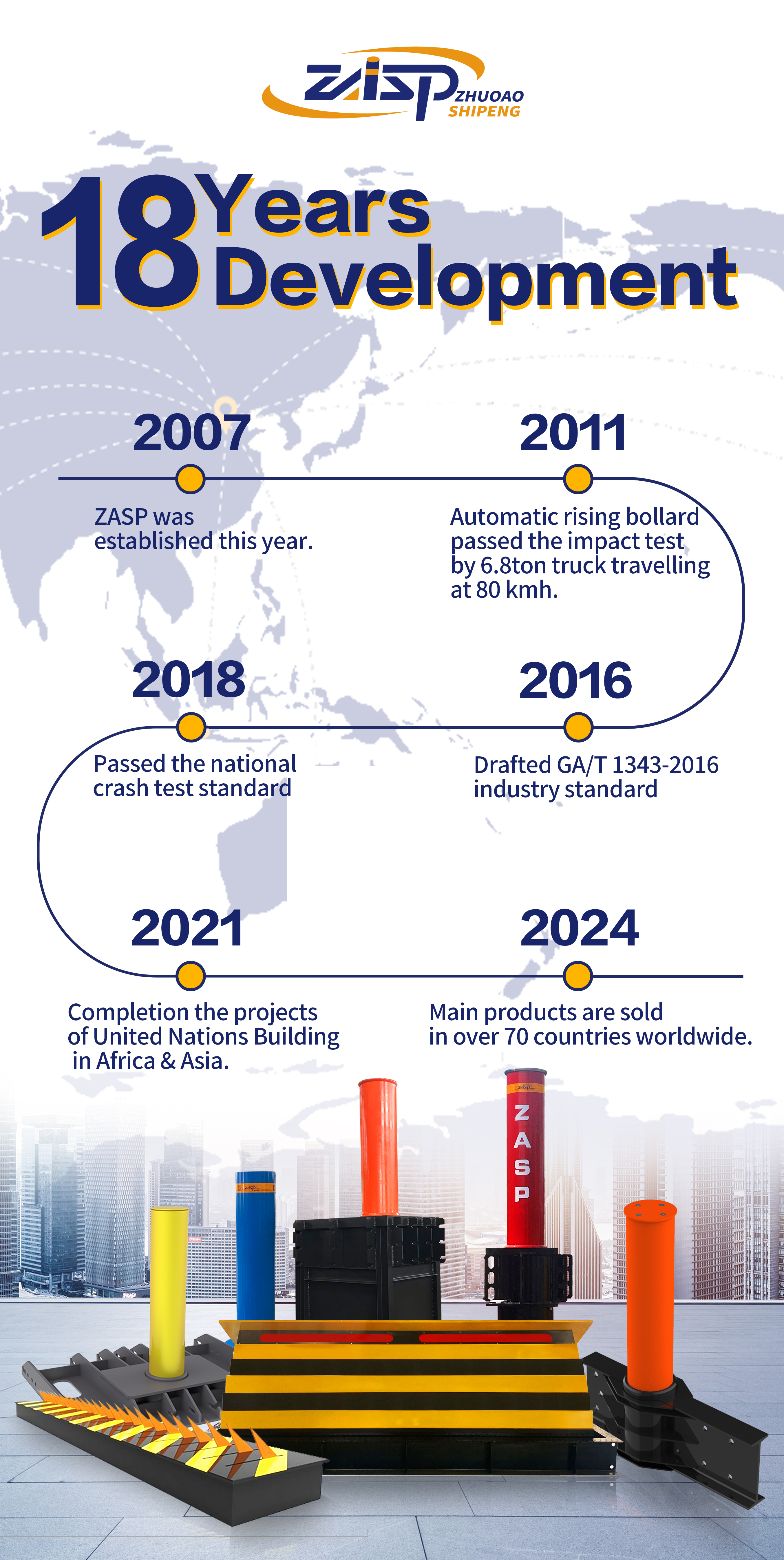 We are thrilled to announce that Beijing ZhuoAoShiPeng Technology Co., Ltd. (ZASP) will be participating in the highly anticipated Intersec Saudi Arabia 2025, set to take place from September 29 to October 1, 2025, in Riyadh, Saudi Arabia. Join us at booth 3-C46 to explore our cutting-edge solutions in Hostile Vehicle Mitigation and roadway safety barrier equipment. Discover Our Product Range At…